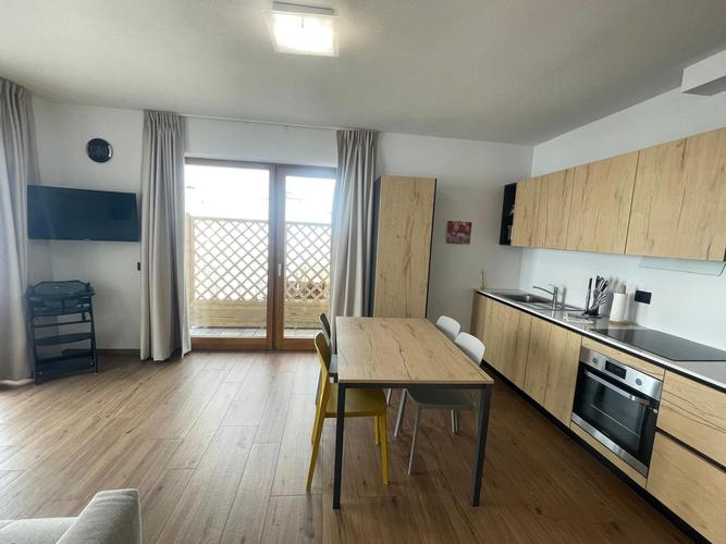 Questo appartamento offre un ambiente accogliente e raffinato, perfetto per chi desidera godere di momenti di relax immersi nella natura alpina. Il punto forte di questa proprietà è il suo ampio balcone che regala una vista mozzafiato sulle montagne circostanti, ideale per godersi tramonti indimenticabili e l'aria fresca di montagna.