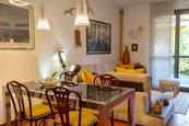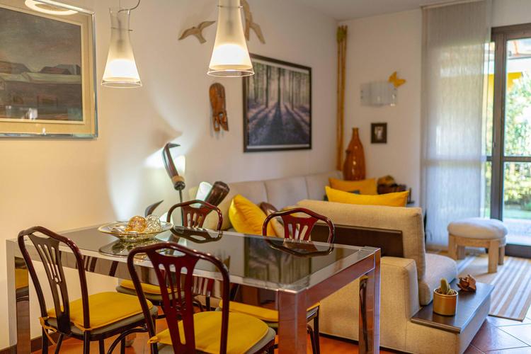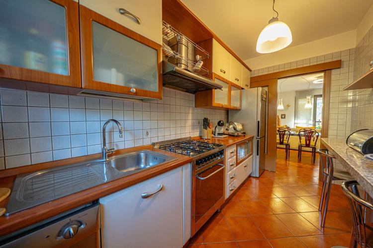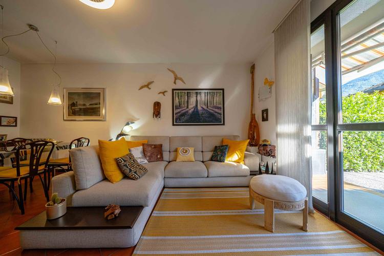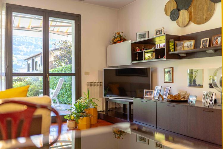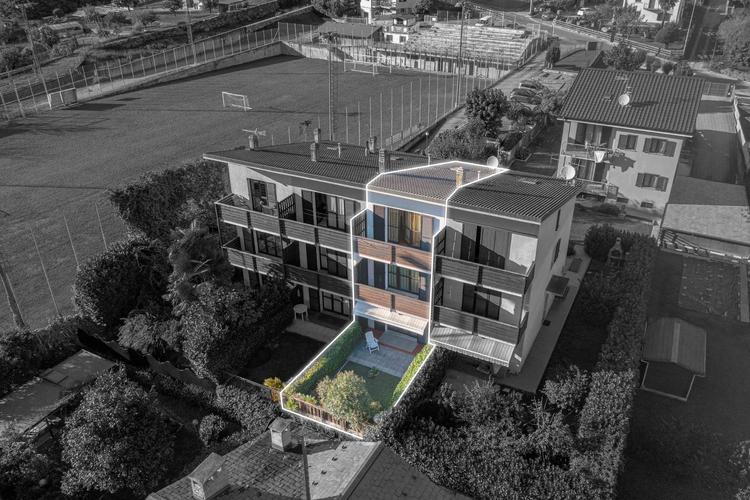 L’immobile, in buone condizioni e con classe energetica F, si compone di tre camere da letto, due bagni, un ampio soggiorno e una cucina abitabile. Dispone inoltre di tre balconi con vista sulla natura e sulle montagne, due giardini privati di tot 53 mq, un terzo giardinetto esterno e un box di 47 mq, oltre a due posti auto esterni.